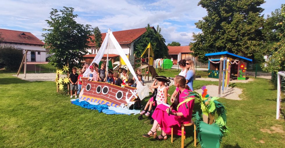 Am 18. Juli 2025 fand im Kindergarten Mullewapp das große Vorschulkinderabschlussfest statt. Die stellvertretende Leitung, Frau Simona Böhm begrüßte die Kinder und alle anwesenden Personen. In ihrer Rede erinnerte Sie an die aufregende, schöne Zeit im Kindergarten. Das Thema der Feier lautete „Die Piraten gehen auf Schatzsuche“.